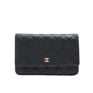 Chanel quilted caviar skin chain wallet black gold metal fittings