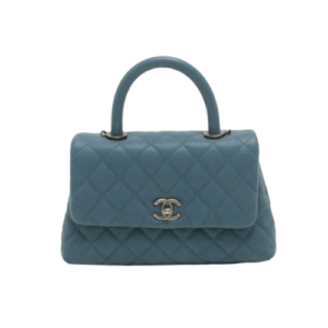 Chanel Coco handle caviar skin 2WAY handbag blue silver metal fittings