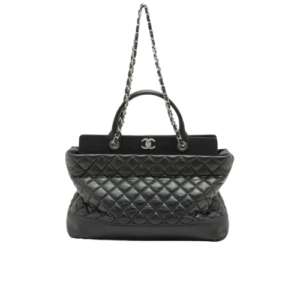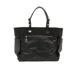 Chanel Paris Biarritz GM coated canvas tote bag black silver metal fittings