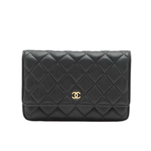 Chanel quilted lambskin chain wallet black gold metal fittings